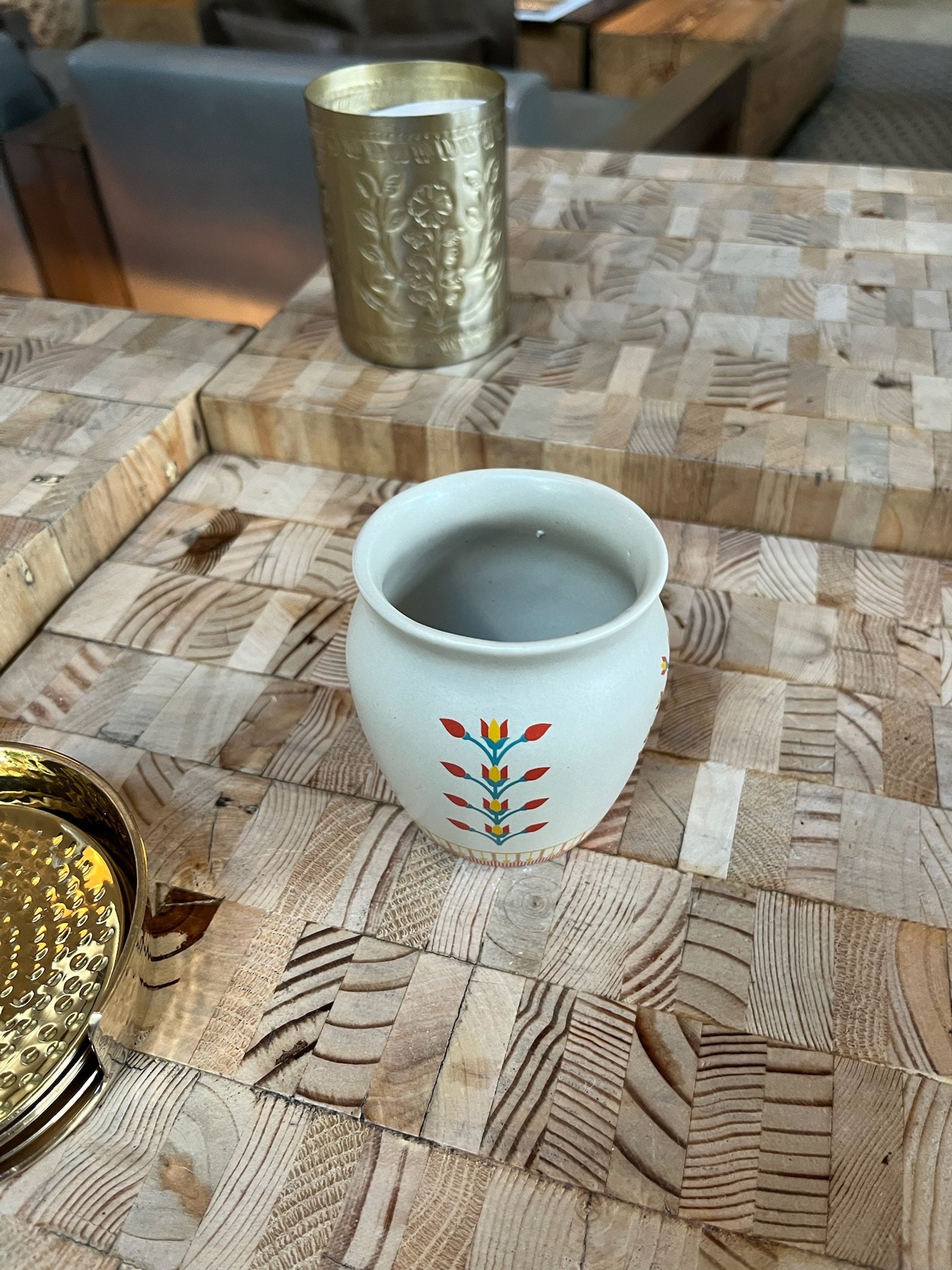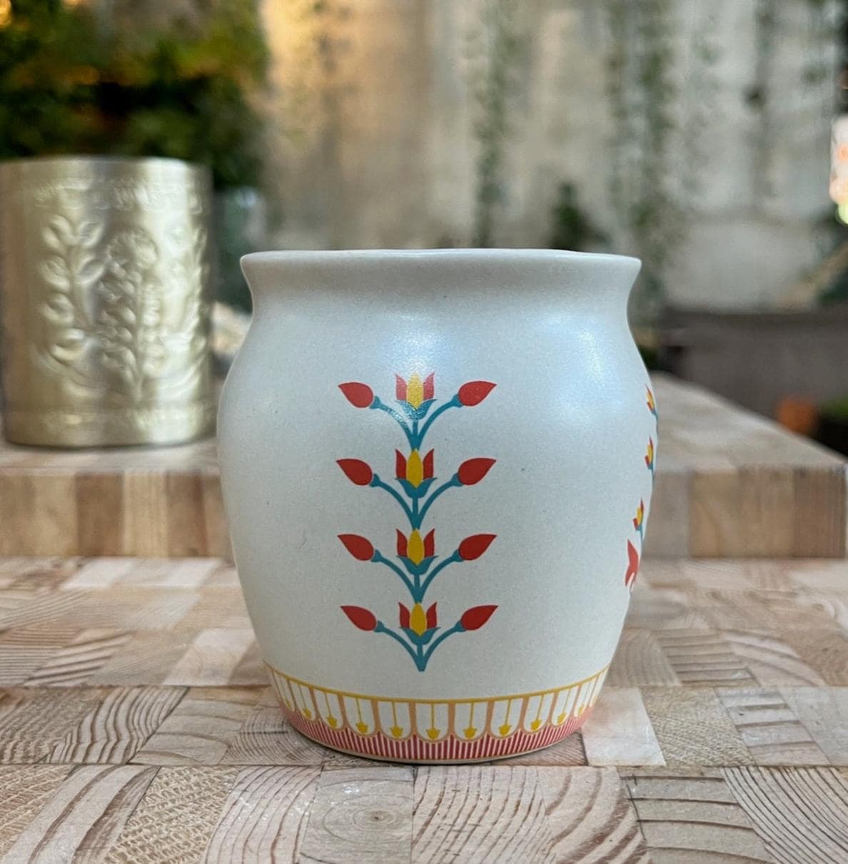 Handmade and hand painted cup with cute motif. Perfect for your morning matcha or for flowers from your morning walk. Cups can be stacked one on top of the other for easy and compact storage. Microwave and dishwasher safe!