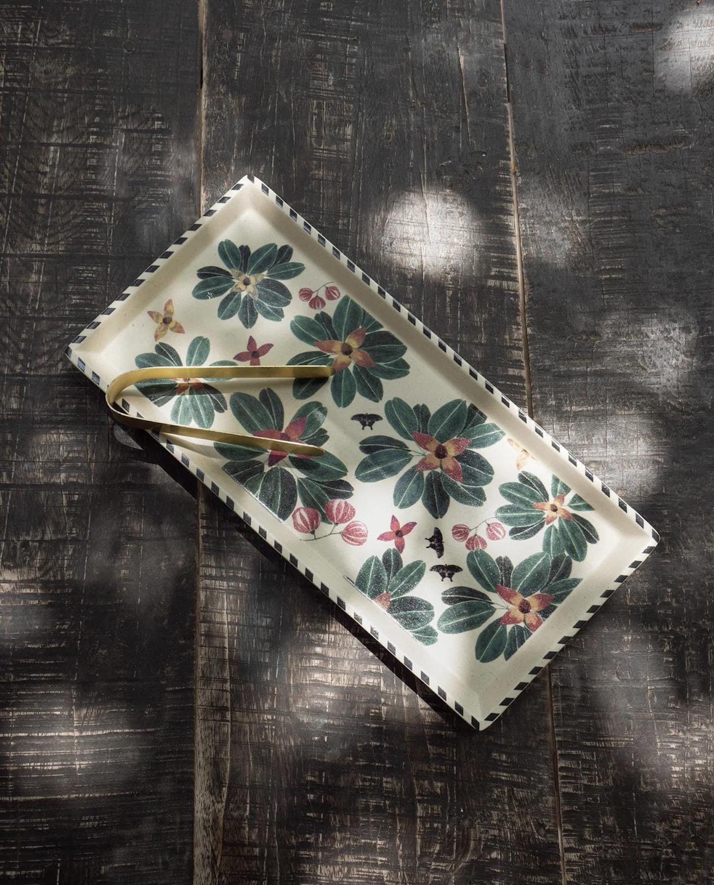 This stoneware cookie tray features a pretty floral print and comes with a pair of brass finish tongs to help you serve with easeExcellent to gift or keep