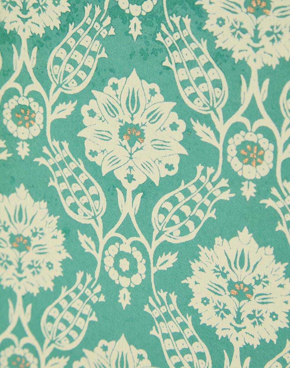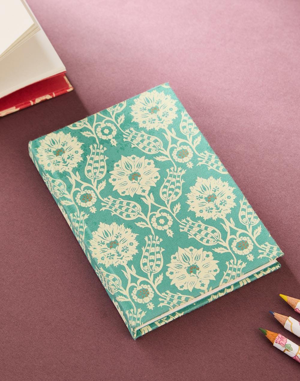 Inspired by traditional Indian craftsmanship, this elegant journal features intricate gold foil detailing on a rich teal background, making it a stunning addition to your stationery collection.