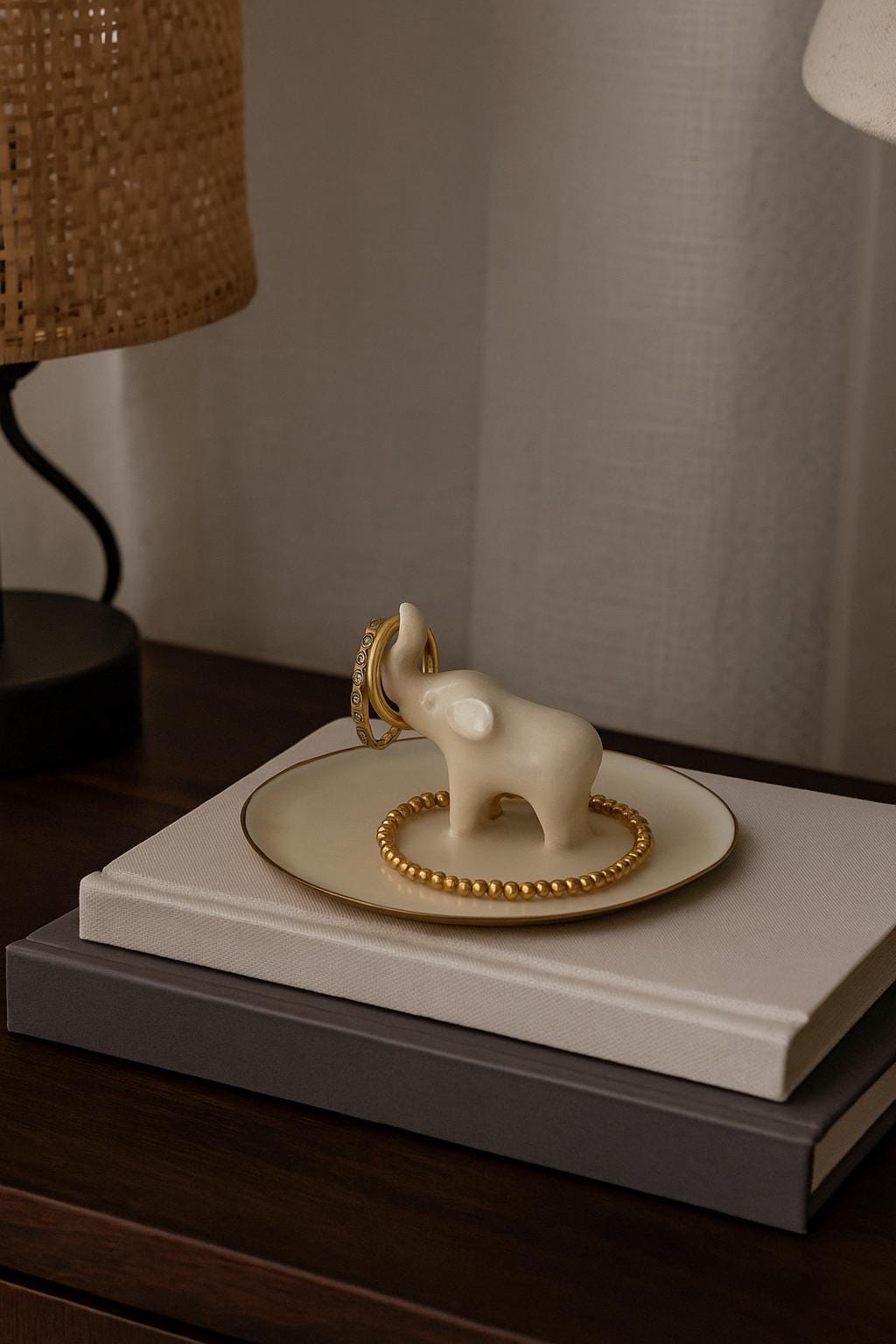 Handcrafted in glossy white brass, this elephant-shaped trinket tray is perfect for organizing jewelry, coins, or keys. A thoughtful gift or stylish shelf accent, it adds charm to desktops, vanities, or entryways. Comes in a ready-to-gift box. Made in India.