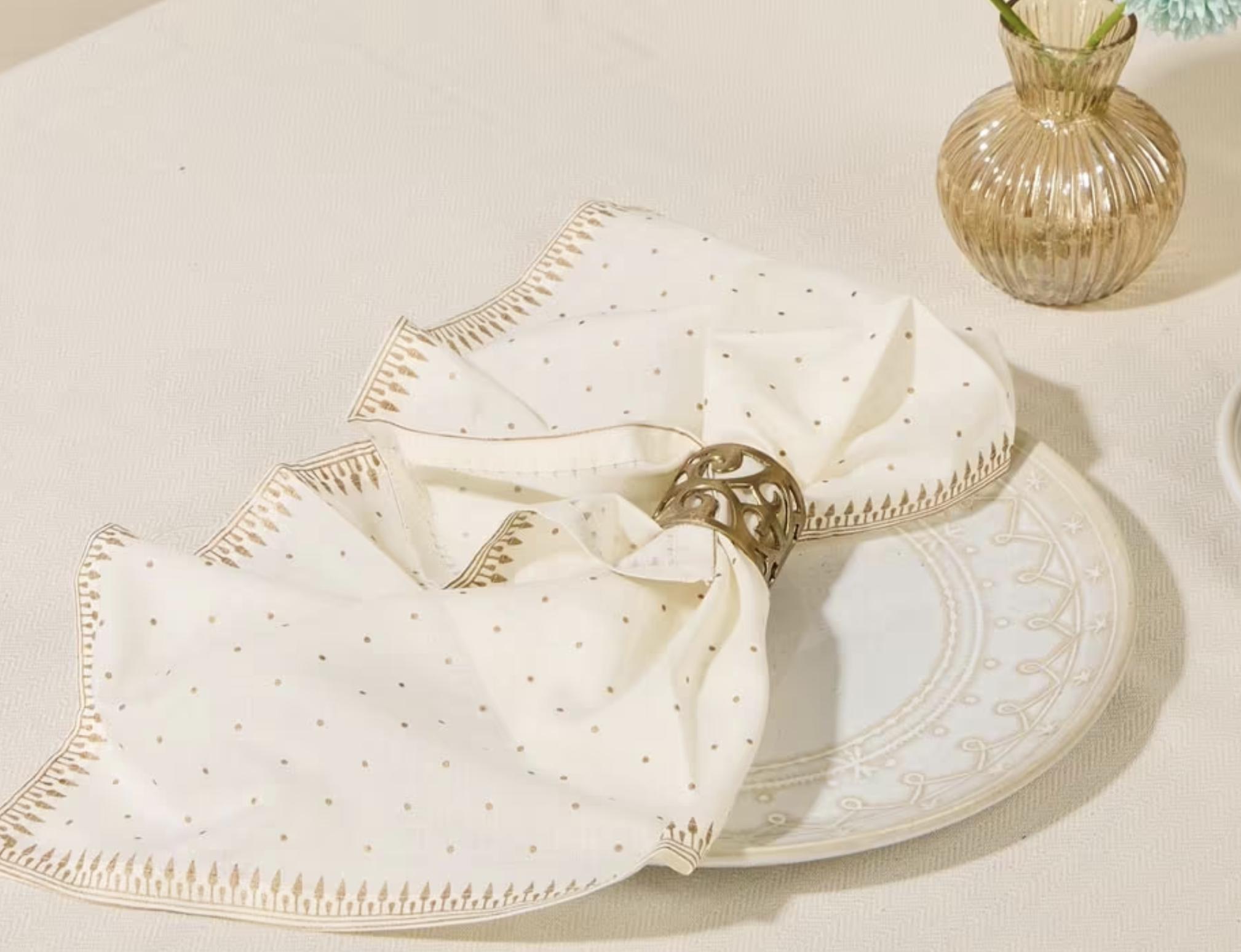 Bring timeless charm to your dining setup with this off-white cotton napkin, delicately embroidered for a soft, elegant touch. Whether you're setting the table for a festive dinner, an intimate brunch, or everyday meals, this handcrafted linen adds a graceful layer of detail. Made from premium cotton and designed for both beauty and durability—this napkin is perfect for gifting or elevating your own hosting essentials. Machine washable and sustainable. Set of 2.