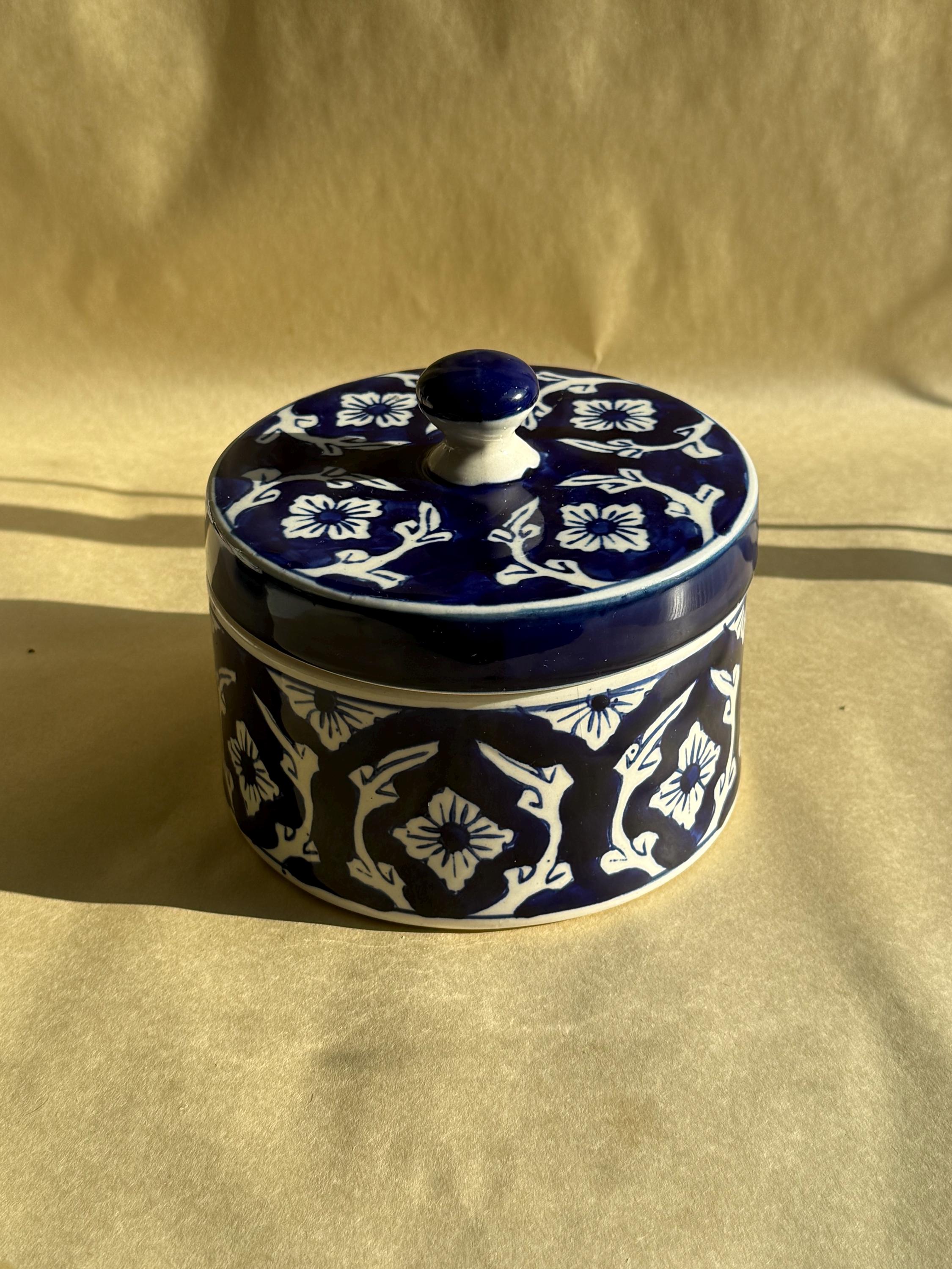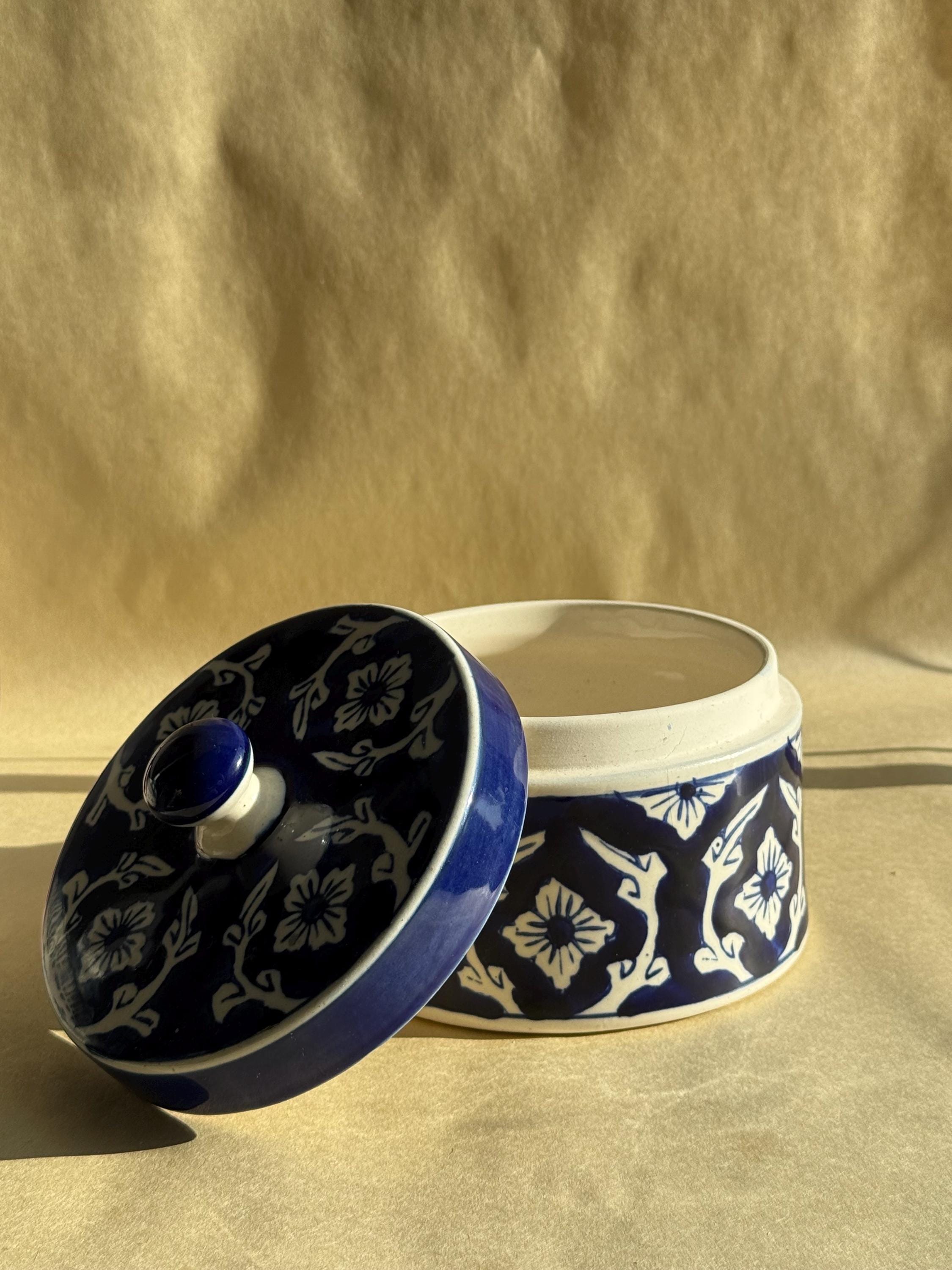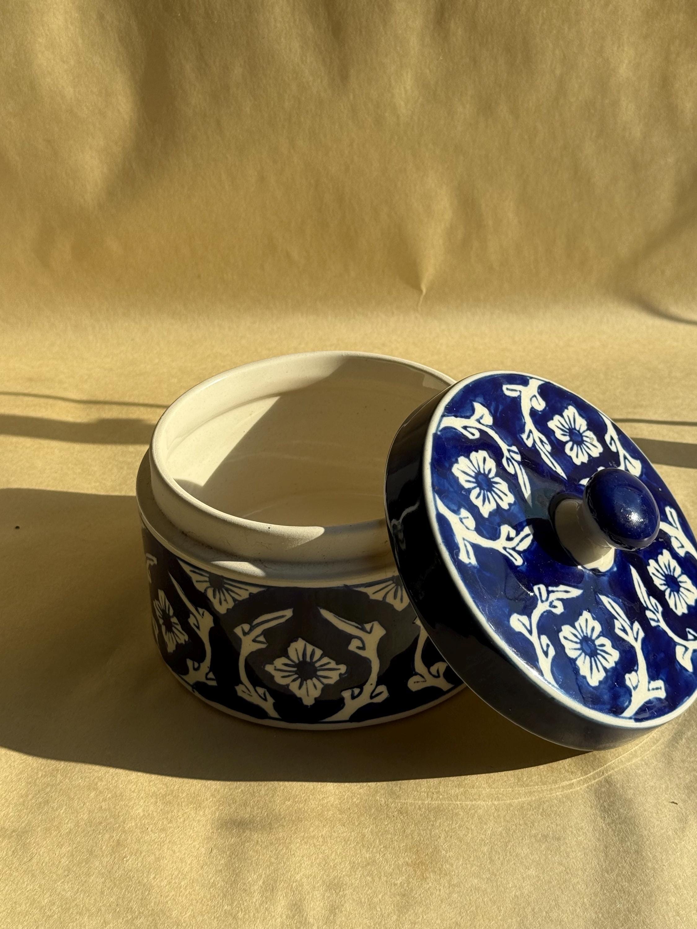Hand-painted ceramic casserole / serving dish, keeping meals warm and looking beautiful. Perfect for serving and storing for sides, mains, or sharing dishes. A timeless, artisan piece for your kitchen. 7" wide 4" high