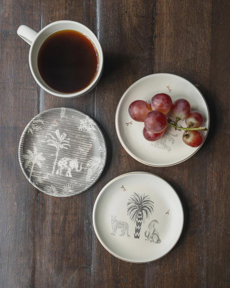 Set of 2, perfectly sized for appetizers, snacks, or desserts, these plates feature a minimalist design that blends elegance and functionality. 5" diameterDishwasher and Microwave safe.