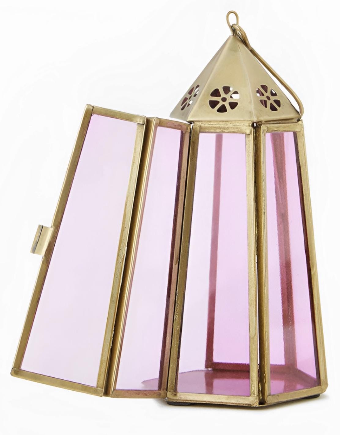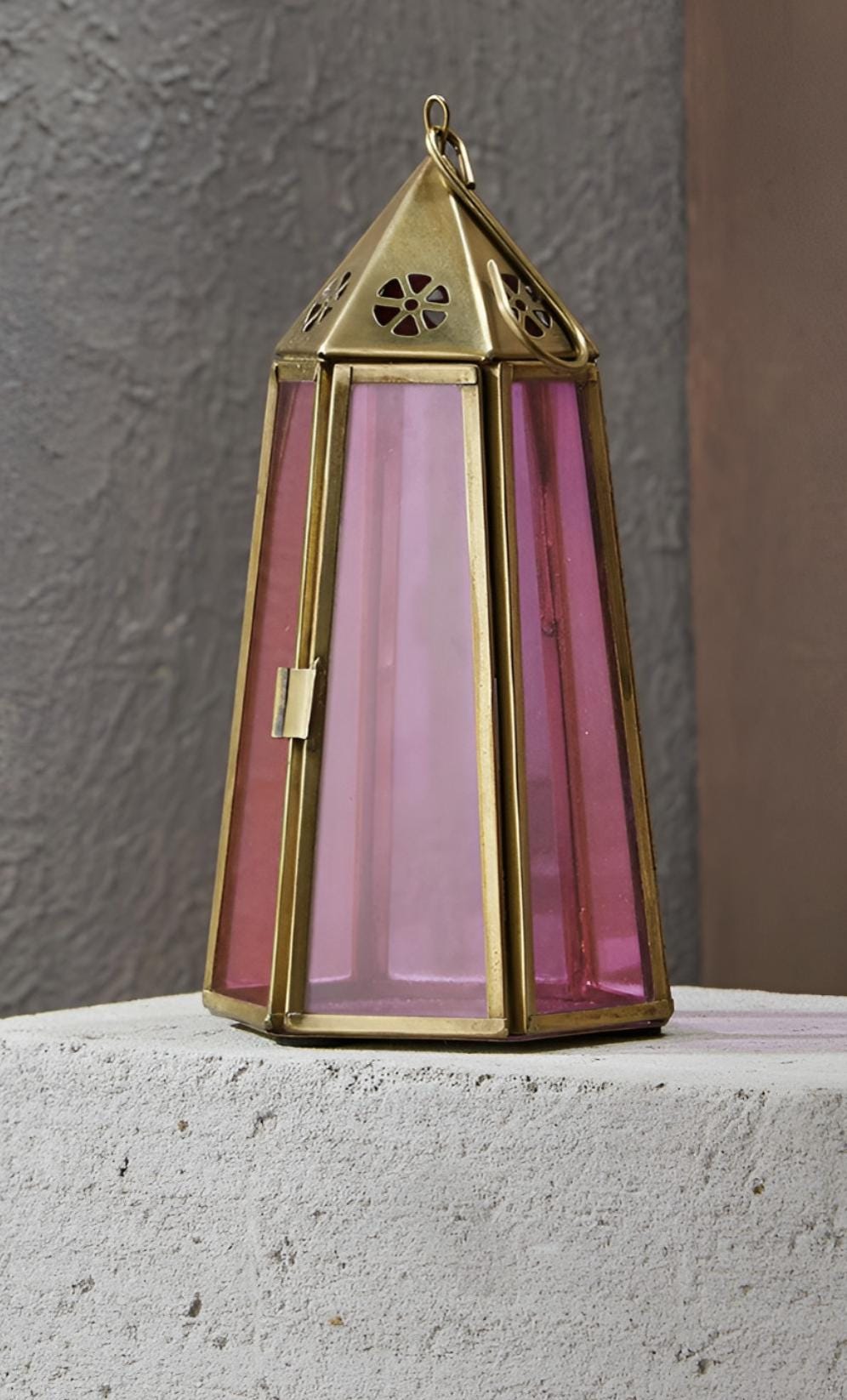 Bring a cozy glow to your space with this handcrafted lantern. Details:Material: Stained glass and metalDimensions: 6" high 3.5" wideUse: For tea lights, LED candles, or decorative purposesCare Instructions: Wipe clean with a soft cloth